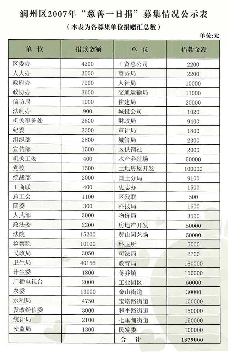 上一篇:2011年认捐企业捐赠公示 下一篇:润州区2008年“慈善一日捐”募集情况公示表