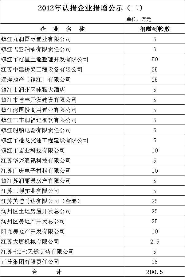 上一篇:2012其他捐赠 下一篇:润州区2012年“慈善一日捐”募集资金公示表