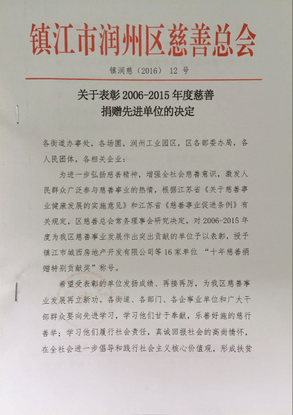 上一篇:关于表彰2006-2015年度慈善 捐赠先进单位的决定11号 下一篇:关于表彰2006-2015年度慈善捐赠先进单位的决定7号