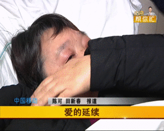 记者:这是我们刚刚拍的照片,妈妈躺在病床上,现在妈妈身体恢复得还好呢,还行,她蛮担心你的,好,你看一下,这妈妈,看到了没有啊,你看一下,看到了……
