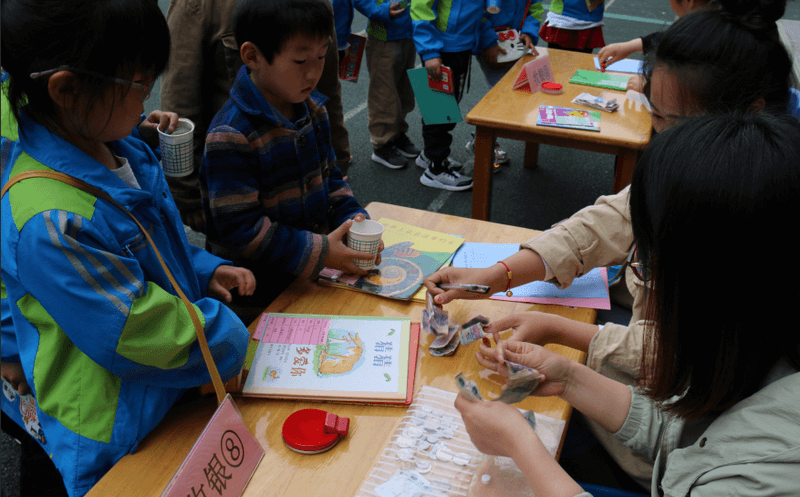 “小小的书,大大的爱”,刚进入校园就听到小朋友们精神奕奕的念着本次活动的口号。上午老师们分别带领小班中班大班的孩子们选择自己喜爱的图书,然后有秩序的到由家长志愿者组织的收银台那里献上自己的爱心,作为回报孩子们可以获得喜爱的图书。看到自己喜爱的书籍,买到心仪的书籍,孩子们高兴得不得了。活动的过程中我们还了解到一位小朋友拾金不昧,捡到二十元人民币主动交给老师作为善款。不光是小朋友在行善,我们家长也做着孩子们的榜样,主动捐赠绿色植物,保护我们的家园。慈善不代表是轰轰烈烈,惊天动地的,它不在多,不在大,而在于生活的点点滴滴。