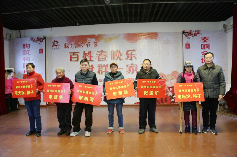 1月17日下午,由金山街道黑桥社区、润州区慈善总会主办的第五届百姓春晚在润州区文化馆隆重举行。此次活动,和百姓一起喜迎春节的同时,润州区慈善总会倾听困难群众的新年愿望,并为10名困难群体送去电饭煲、暖风机、烘干机等家用电器,为低保边缘家庭送去米、油等生活用品共计价值一万元,圆了新春梦想。
