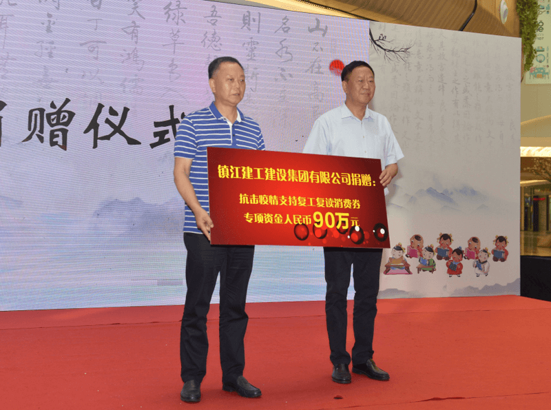 6月1日上午,润州区在协信星光时代广场举行“润州请您来读书”活动启动仪式。镇江建工建设集团有限公司向润州区慈善总会捐赠“抗击疫情支持复工复读消费券”专项资金,价值90万元,并接受慈善捐赠证书。