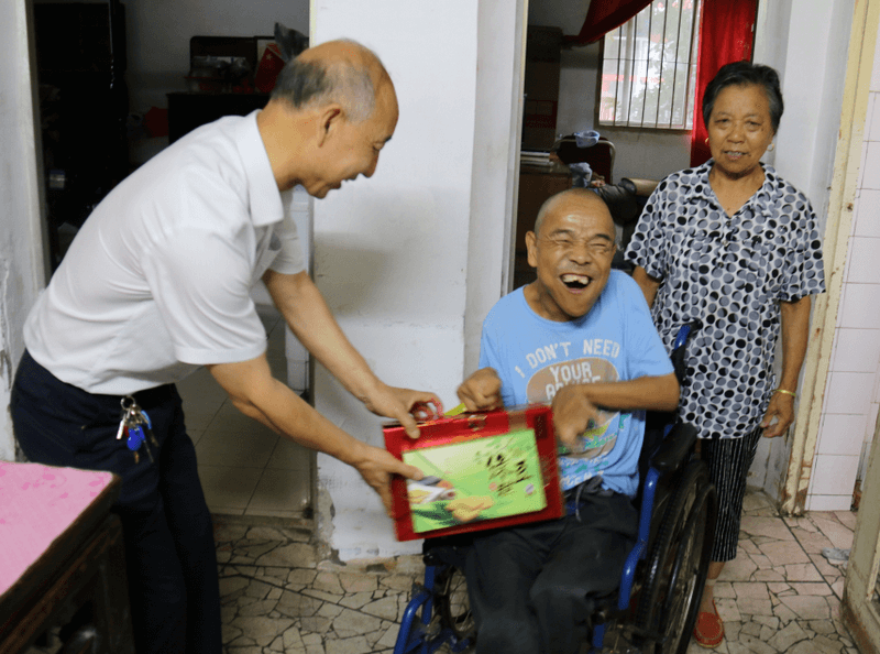 随后,来到社区一60多岁的残疾人家中。在接到区慈善总会送去的礼物后,孙先生笑开了花,连连表示感谢。
