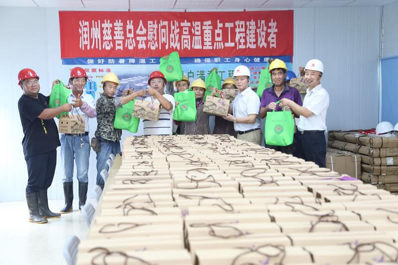 昨天下午,润州区慈善总会向镇江建工集团奋战在江南学校工程、中央储备粮镇江直属库有限公司建设仓储物流工地的建设者,送去毛巾、香皂、洗发水、洗衣粉等防暑用品,共计400份。