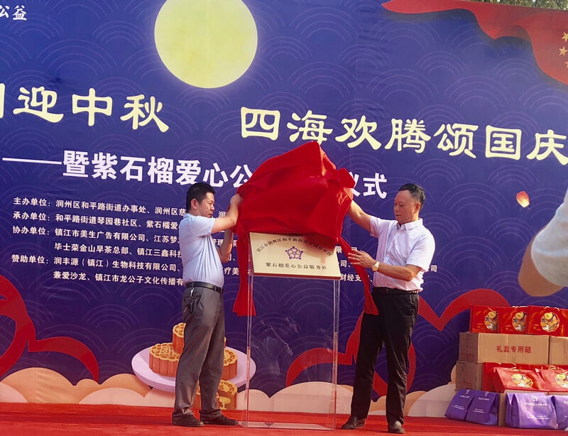在此次活动中,区领导还为镇江市润州区紫石榴爱心公益服务社成立举行揭牌仪式。