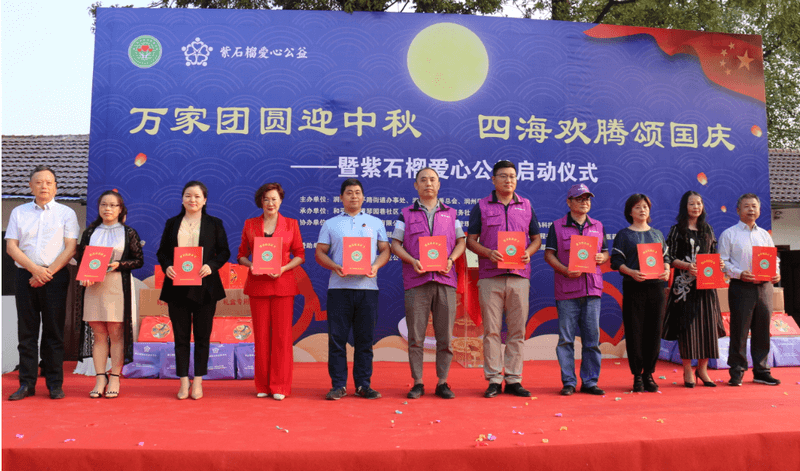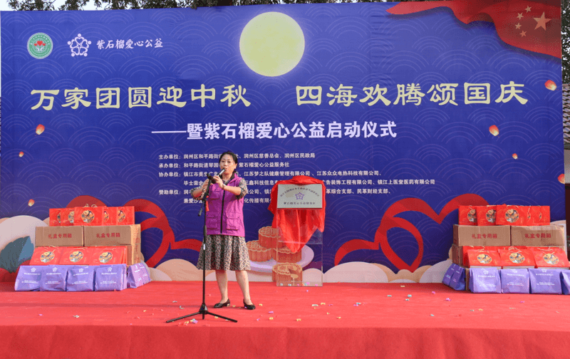 为进一步弘扬爱国主义精神,提升家国情怀,展现润州区慈善总会、社会公益组织爱老助老的精神风貌,激励社区居民团结友爱、共创“强富美高”新镇江,国庆中秋双节前夕,润州区慈善总会联合和平路街道在琴园巷社区举办“万家团圆迎中秋,四海欢腾颂国庆”暨紫石榴爱心公益启动仪式主题活动,为困难群体送上节日祝福。