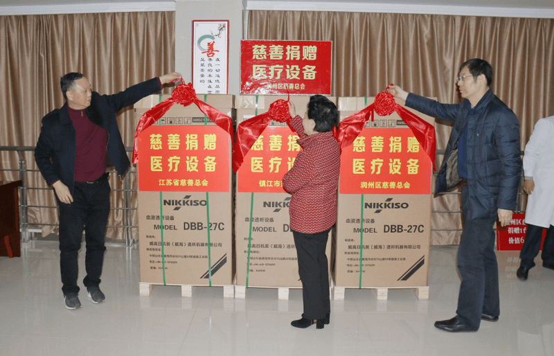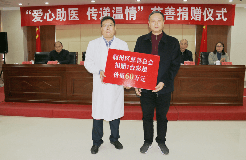 仪式上,市区慈善总会领导向润州区七里甸社区卫生服务中心捐赠价值60万元的彩超机1台和价值40万元的血透机3台。