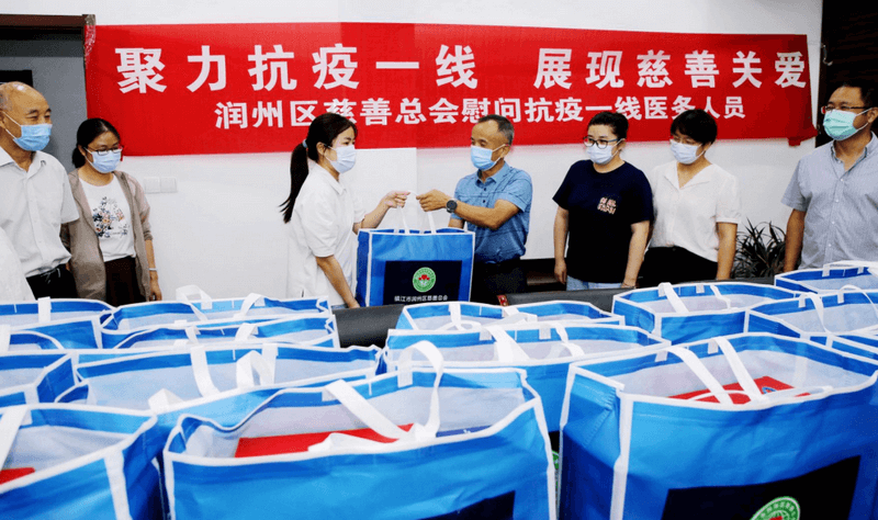 8月24日上午,润州区慈善总会为奋战在防疫一线、担负着隔离防护重任的医务人员送去了慰问品,以表达对他们的关心和问候。