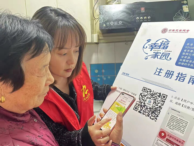 “张奶奶,您扫一下这个二维码,就可以关注咱们幸福家园小程序啦!”近日,金山街道京畿路社区的工作人员正深入居民家中,向他们介绍“幸福家园”村社互助项目。