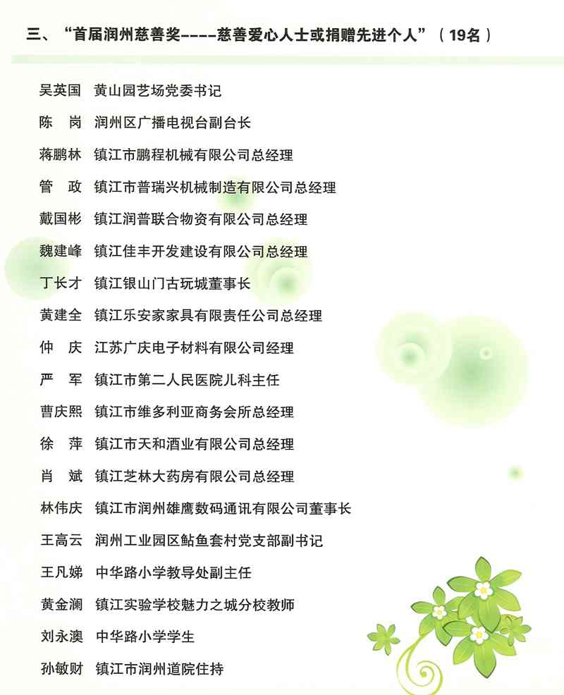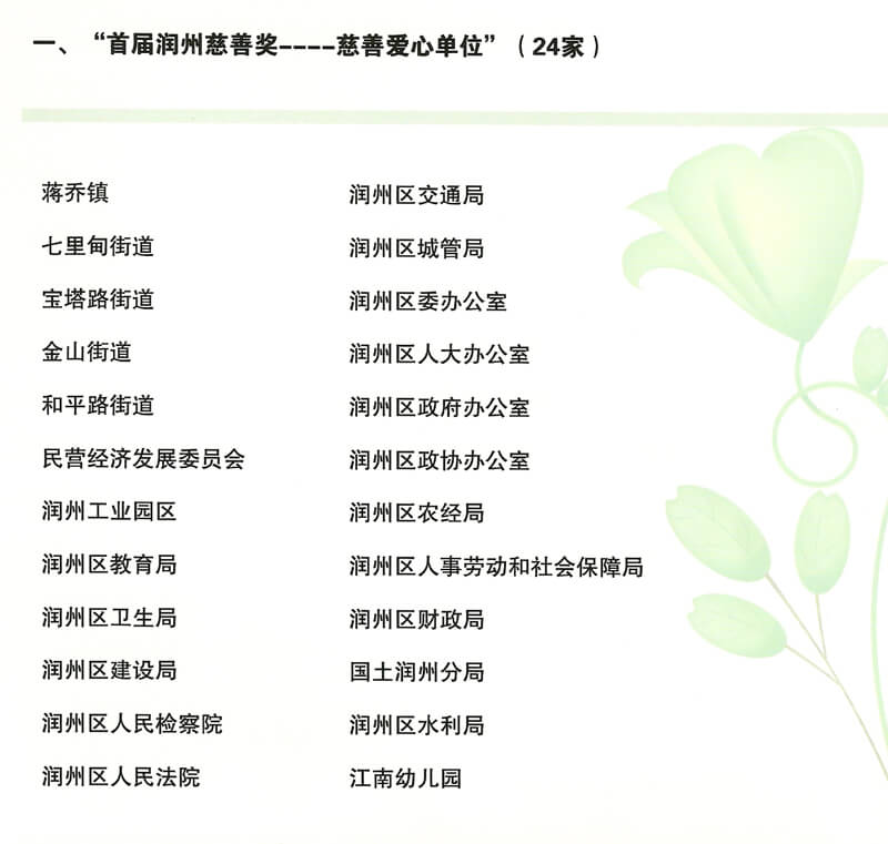 上一篇:热烈祝贺镇江市润州区慈善总会成立五周年 下一篇:关于“润州慈善爱心奖”的表彰决定