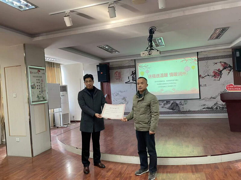 1月13日下午,江苏亚迪建设工程有限公司董事长刘党富向润州区宝塔街道困难居民捐赠100份生活物资,价值12580元。