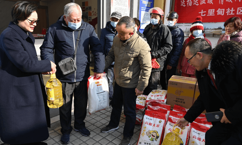 1月13日,润州区慈善总会联合江苏省梦之队健康有限公司、江苏亚迪建设工程有限公司两家爱心企业分别向七里甸街道、金山街道、宝塔街道共200户困难居民分发了价值24780元的大米、油;向一位17岁正上高二无实际监护人的学生捐赠了2000元红包,爱心企业家翁梦艺承诺,这位学生进入高三及大学费用将由她承担;给予12位困难的环卫工人3万余元。爱心企业家刘党富表示我们会继续弘扬“奉献、友爱、互助、进步”的志愿精神,通过开展有意义的公益行动切实服务社区,做到积小善为大善,积极履行企事业单位社会责任,共同传播文明新风。