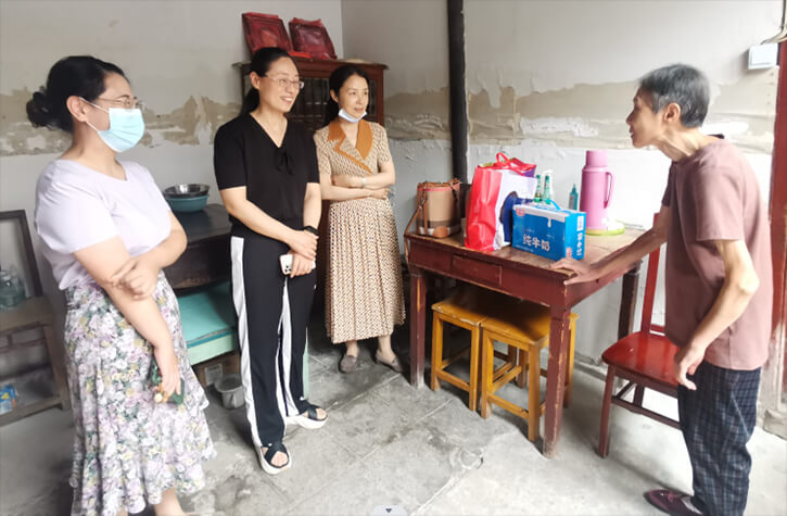 8月25日上午,润州区慈善总会常务副会长朱勤、区民政局养老科科长林琳和街道社区工作人员一起走访了金山街道银山门社区三无老人詹惠莲以及和平路街道牌湾社区听力一级残疾的张叶倩家中,给他们送去了牛奶和生活用品。