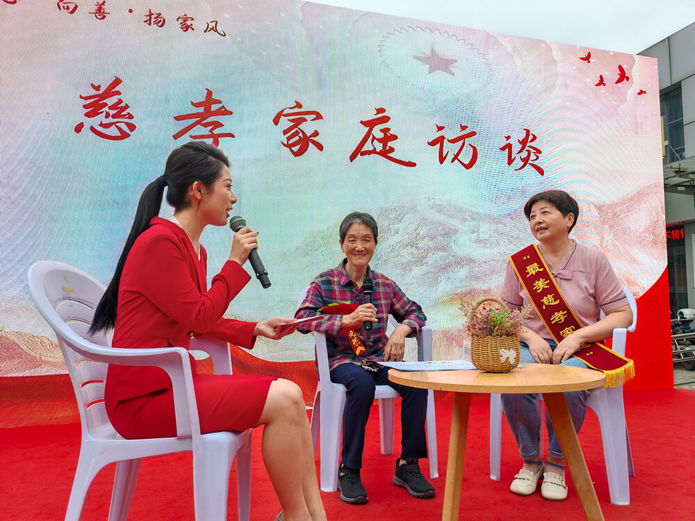 “慈孝家庭”表彰活动还安排了“走进慈孝家庭,聆听家风故事”环节,主持人以现场对话的形式,带领观众一起走进许丽家庭。都说婆媳之间相处难,但家住十八进小区的许丽与其婆老太孙祥林,在日常生活中相互照顾、相互爱护、相互尊重、相互信任,以真心换真情,不是母女胜似母女的故事,不时赢得台下观众一阵阵热烈的掌声,许多观众也从许丽和孙祥林的故事里领悟到婆媳和谐相处的真谛。