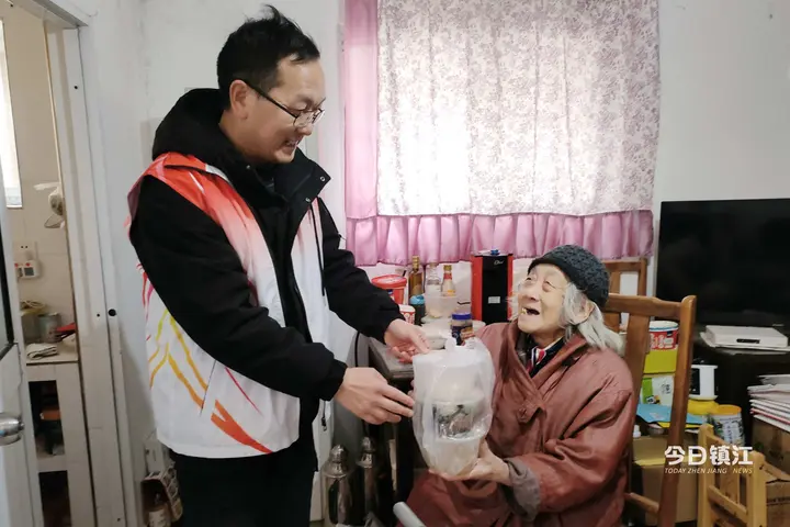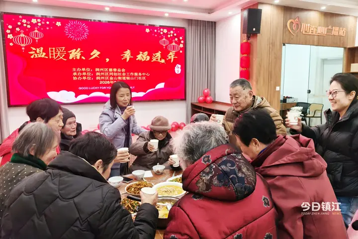年夜饭的香气在润州区金山街道银山门社区活动厅里弥漫,88岁的居民陈奶奶拉着志愿者的手,眼含泪光:“第三年了,你们年年都记得我……”